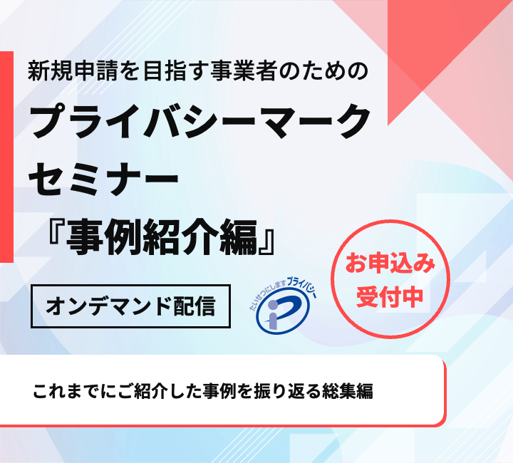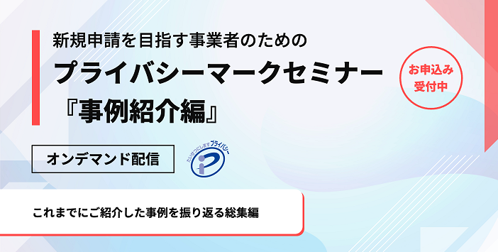 「新規申請を目指す事業者のためのプライバシーマークセミナー『事例紹介編』」申込ページ
