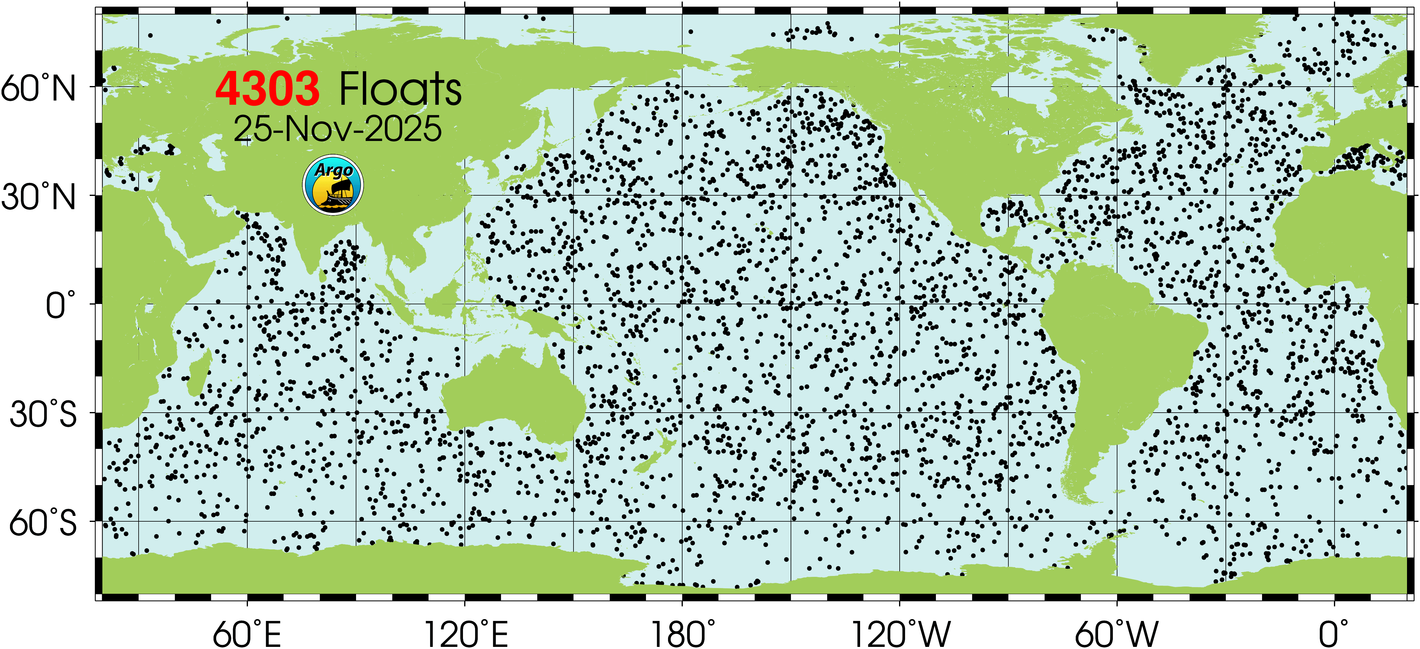 | Argo deployments began in 2000, and by November 2012, the millionth profile was collected with the 2 millionth profile collected in November 2018 and the 3 millionth profile collected in July 2024. Today, even with close to 4000 active floats, there are still some areas of the ocean that are over-populated while others have gaps that need to be filled with additional floats. Today’s tally of floats is shown in the figure to the right and additional float statistics can be found here. To maintain the Argo array, national programs need to provide 5-600 floats per year.