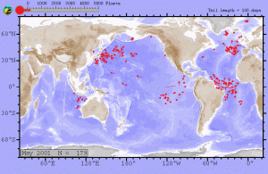 Below are different animations that have been produced to show Argo float locations. Some of the animations require you to click on them to start them. Please credit the Argo Program and the creator listed below.