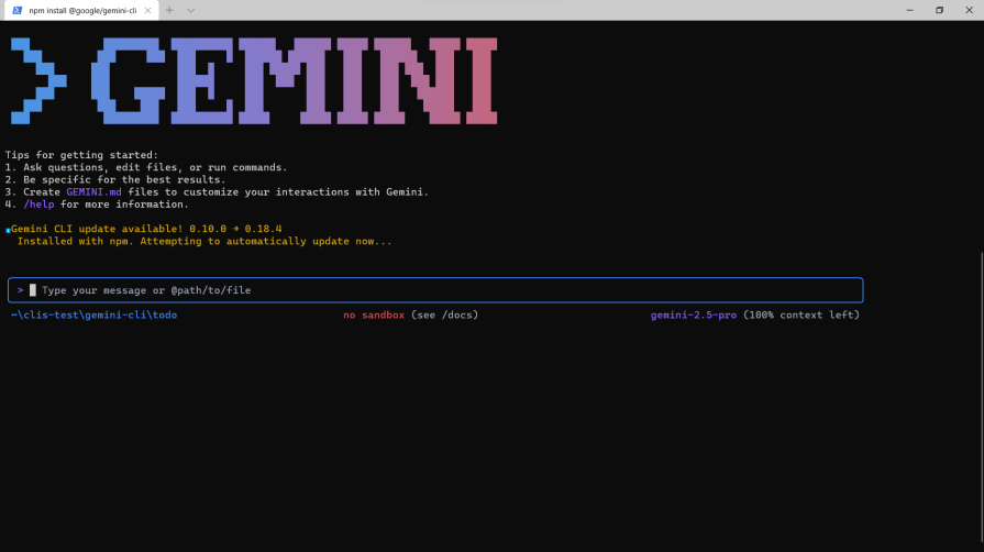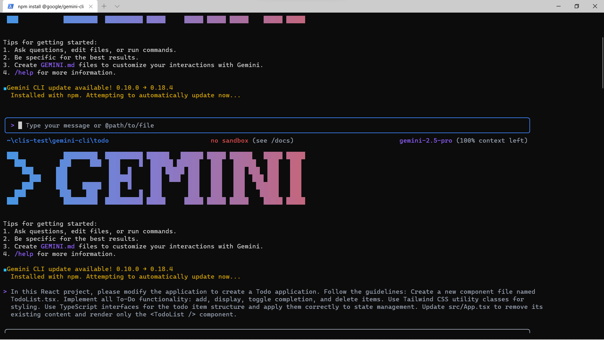 One thing to note is that Gemini CLI was already installed and set up on my machine before this testing.
