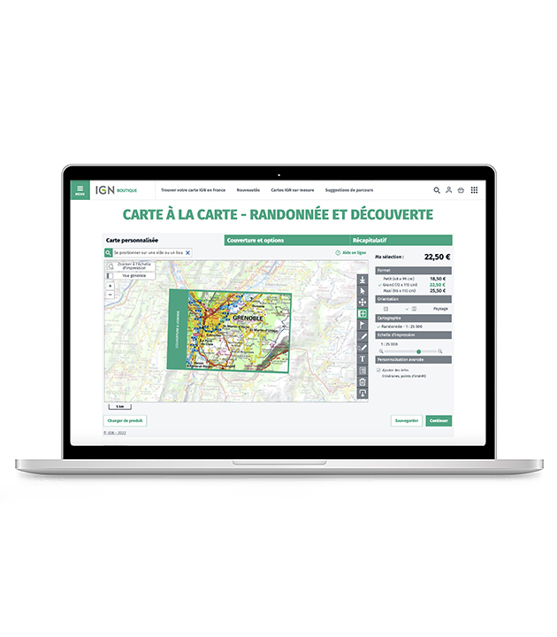 Le service Carte à la carte est un outil en ligne proposé par l'IGN et qui vous permet de créer une carte papier sur mesure centrée sur la zone de votre choix.