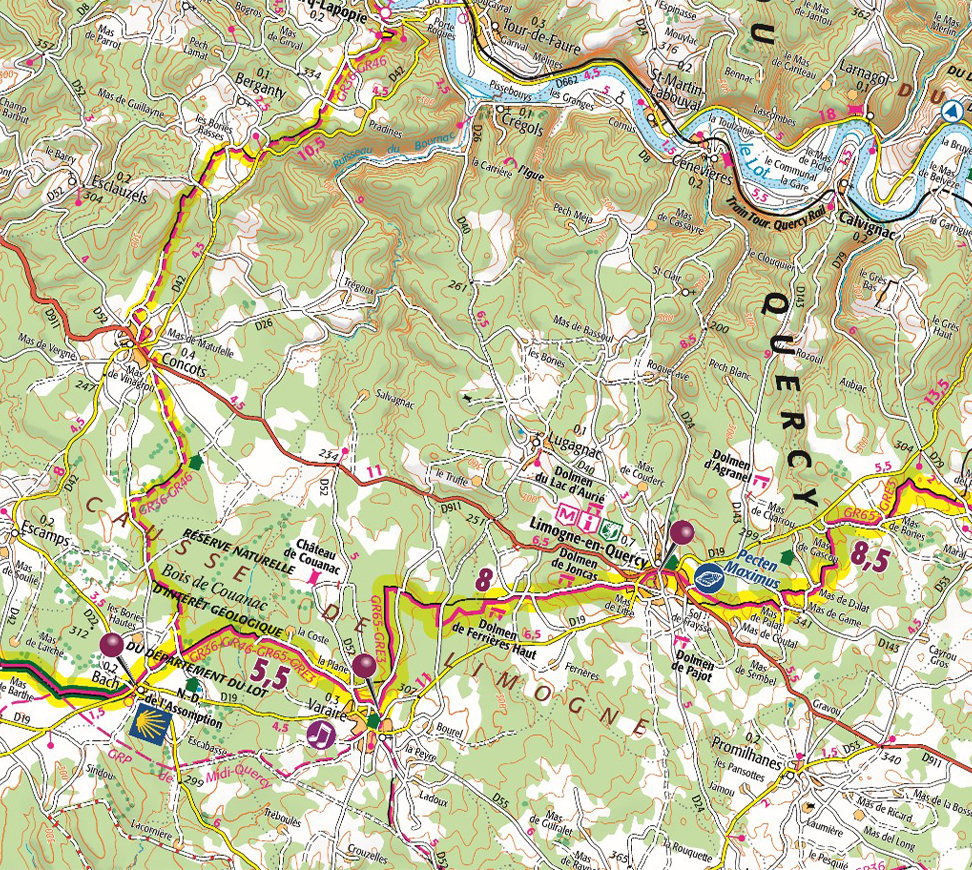 Toutes les informations nécessaires à la randonnée y sont également représentées : tracés des GR® et GR® de pays, courbes de niveau, points cotés, zones rocheuses, glaciers mais aussi gites d’étapes et refuges.