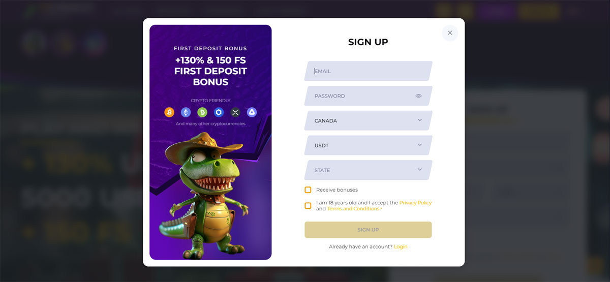 5.3.1 Deposit the minimum amount specified in the bonus conditions (the amount may vary depending on the country of registration and range from 10 to 20 USDT or the equivalent in other currencies) and receive a bonus of 130% of the deposit amount (up to 450 USDT with wagering requirements 40x from received bonus funds sum) plus 200 free spins. The player will receive 30 free spins per day for 5 days (150 free spins in total). Free spins from the First Deposit Bonus are available for: