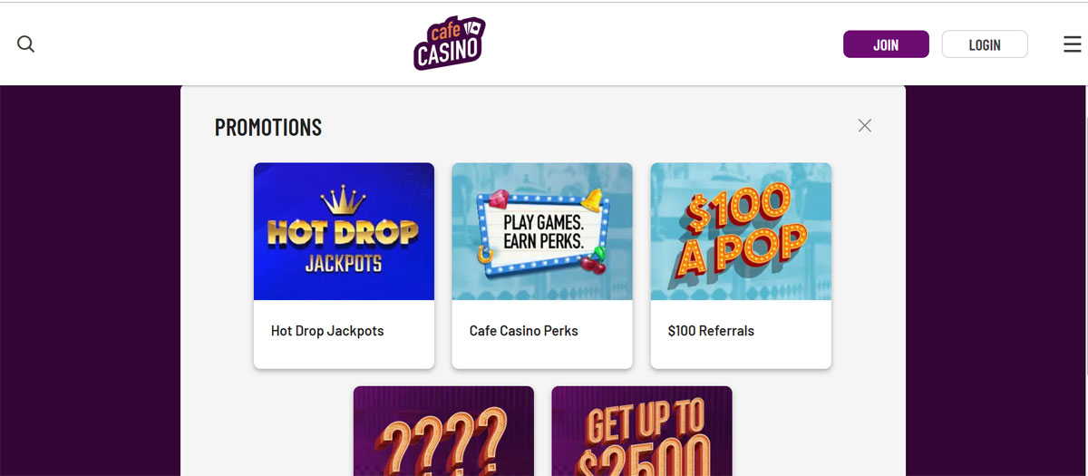 Cafe Casino often offers an array of bonuses and promotions to enhance the gaming experience for its users, and these are frequently accompanied by bonus codes. These codes serve as access keys to unlock various incentives, such as welcome bonuses, free spins, or deposit matches, empowering players to maximize their enjoyment and potential winnings on the platform. By entering the specified bonus codes during the deposit or claiming process, players can activate these exclusive offers tailored to different games or occasions. Cafe Casino's use of bonus codes not only adds an element of excitement and exclusivity to their promotions but also provides players with additional value and rewards, contributing to a more engaging and rewarding gaming experience.