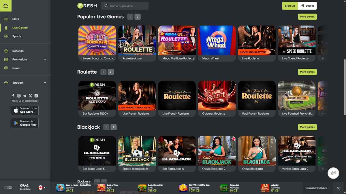 Speaaking of features, Fresh Casino keeps things practical and user-friendly, focusing on features that add real value. The layout is clean, the site loads fast, and everything from signing up to browsing games feels straightforward. There’s clear attention to detail in how things are organized—nothing feels overcrowded or hidden behind too many clicks. Whether you're playing on a phone or a desktop, the interface adapts without skipping a beat. On top of that, the casino has its own downloadable app, something not every online platform offers anymore. The inclusion of a dedicated news section, active social media presence, and fast support channels shows that Fresh is doing more than just hosting games—it’s building a space that feels alive and updated.