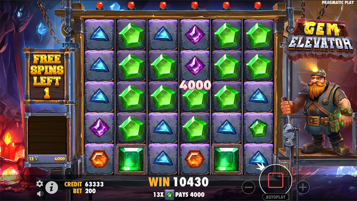 “Gem Elevator” does not use traditional paylines but instead utilizes a cluster pays system. Winning combinations are formed by landing at least five matching symbols connected horizontally or vertically. This system allows for more dynamic and varied ways to win.