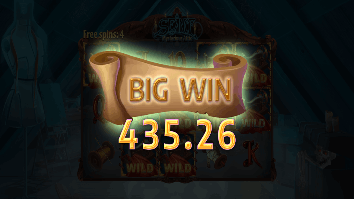 Seance: Mysterious Attic has medium volatility, offering a balanced mix of frequent smaller wins and the potential for bigger payouts.