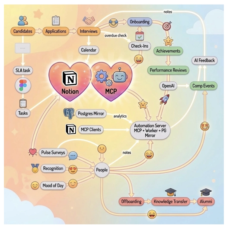 EchoHR demonstrates how Notion + MCP + AI automation can create a transparent and human-first operating system for people operations.