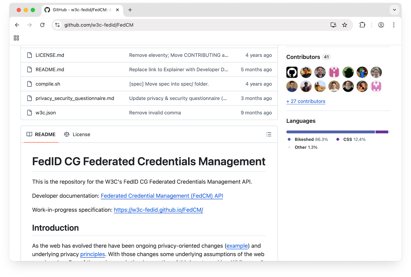 Once a proposal like FedCM is ready for public discussion, it gets published to GitHub as an explainer. At this point, anyone can ask a question or comment on the design of a feature, by creating an Issue on the explainer repository on GitHub. Feedback might describe additional use cases or constraints, provide ideas for improvements—or just show support.