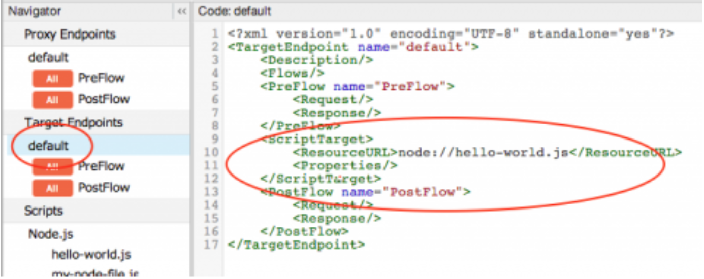 You can't simply invoke a newly imported or created Node.js file. The reason is that Edge requires that one Node.js file be the main file. The main file is specified in the <ScriptTarget> element of the Target Endpoint definition. To specify which file is the main Node.js file, do the following: