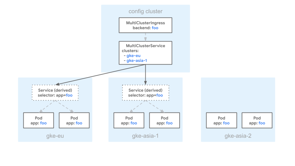 To learn how to configure cluster selection, see Setting up Multi Cluster Ingress.