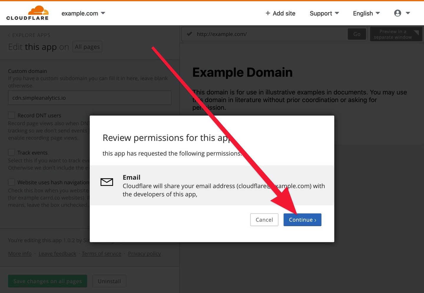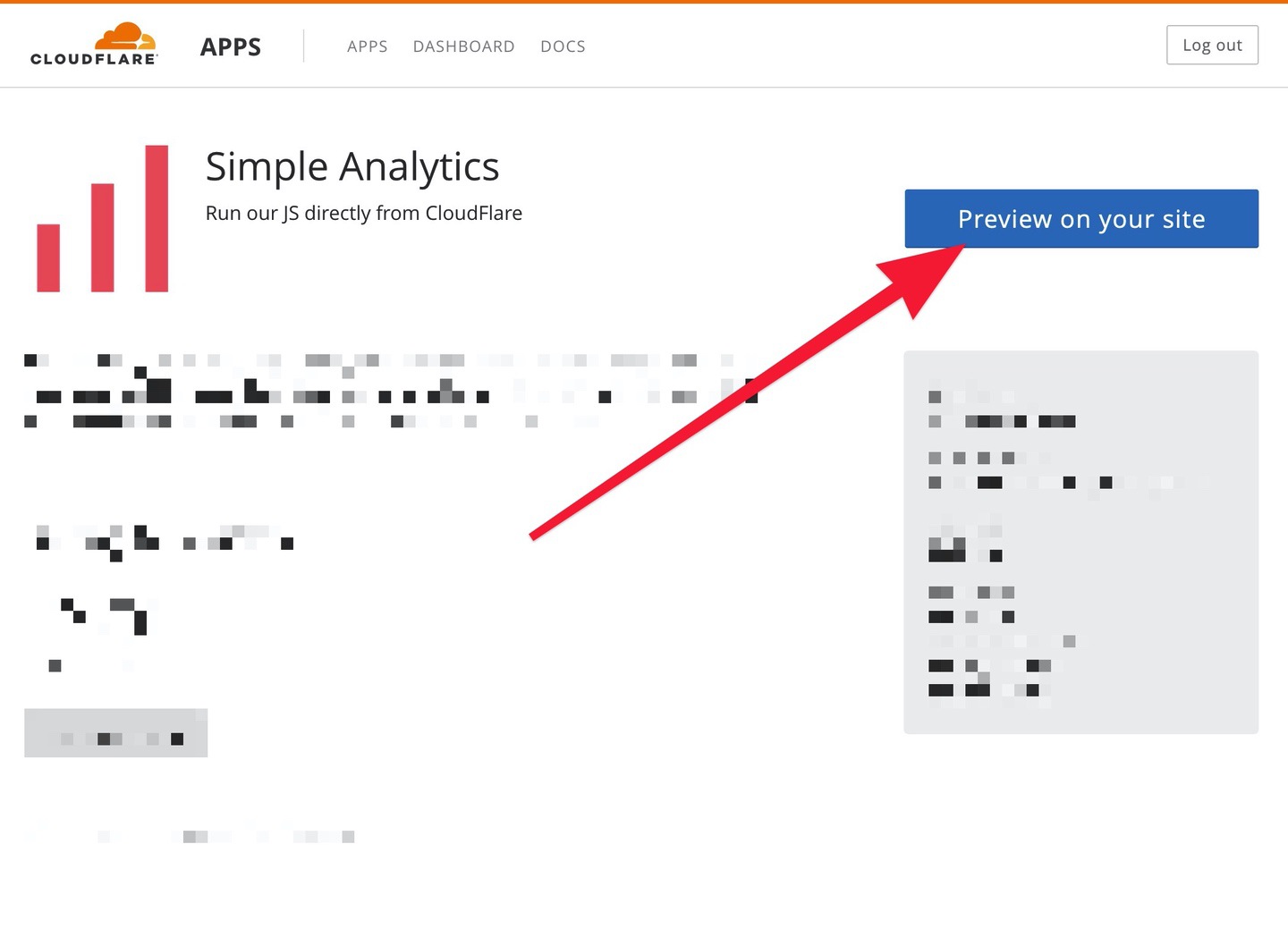 You can embed our script in Cloudflare using Cloudflare Apps. On this page we will explain how to use this feature and help you installing the Simple Analytics app on Cloudflare.