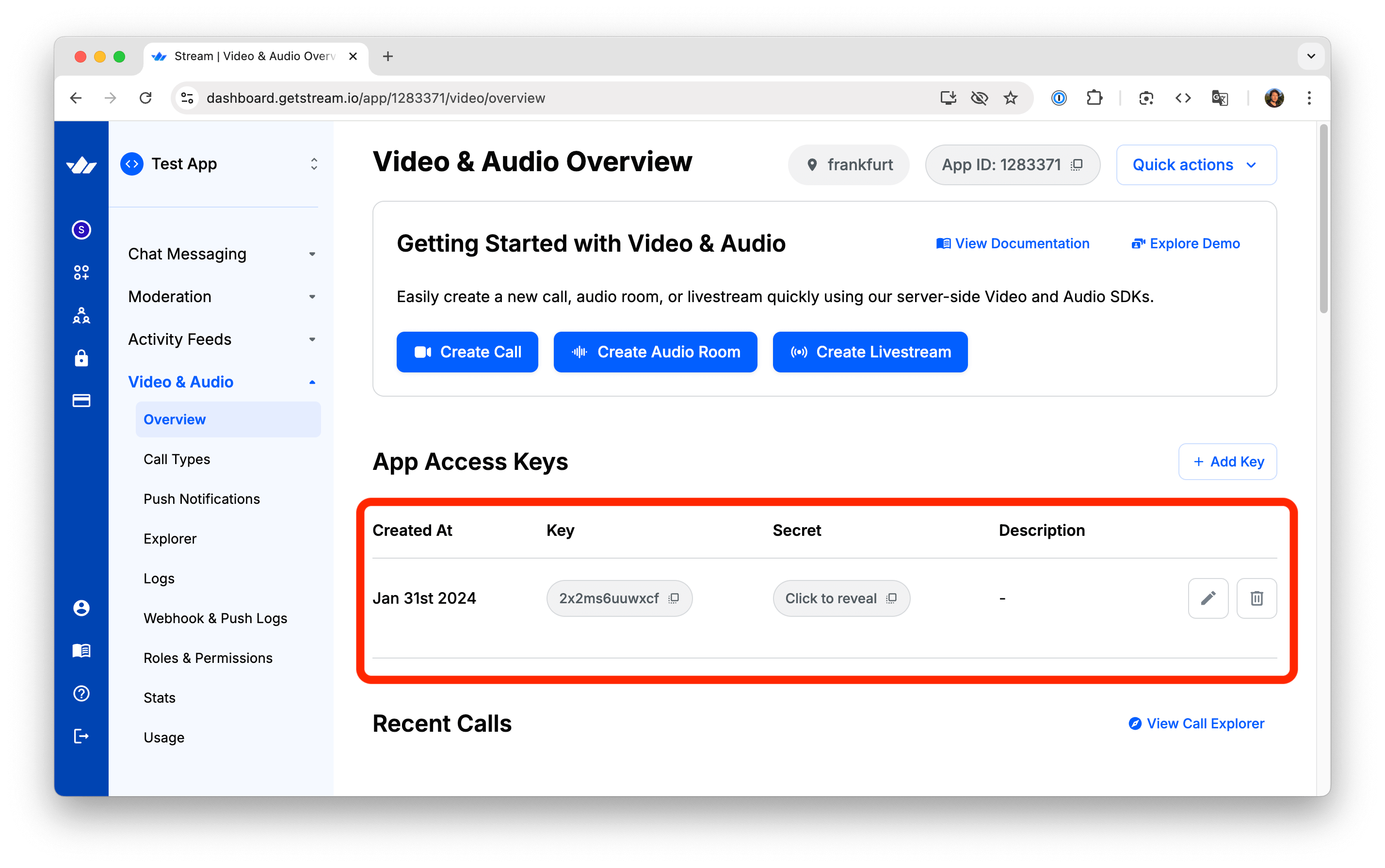 Then edit the .env file with your actual API keys from Step 1.1. You can find the keys on your Stream Dashboard: