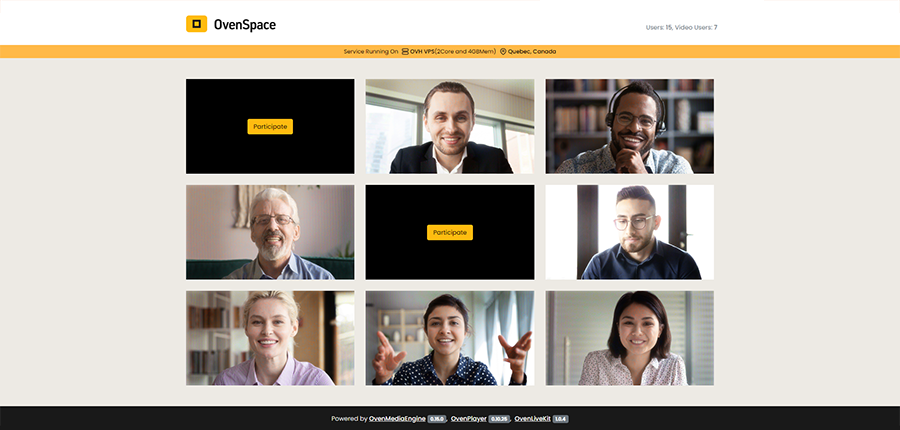 OvenSpace is a sub-second latency streaming demo service using OvenMediaEngine, OvenPlayer and OvenLiveKit. You can experience OvenMediaEngine in the OvenSpace Demo and see examples of applying in OvenSpace Repository.