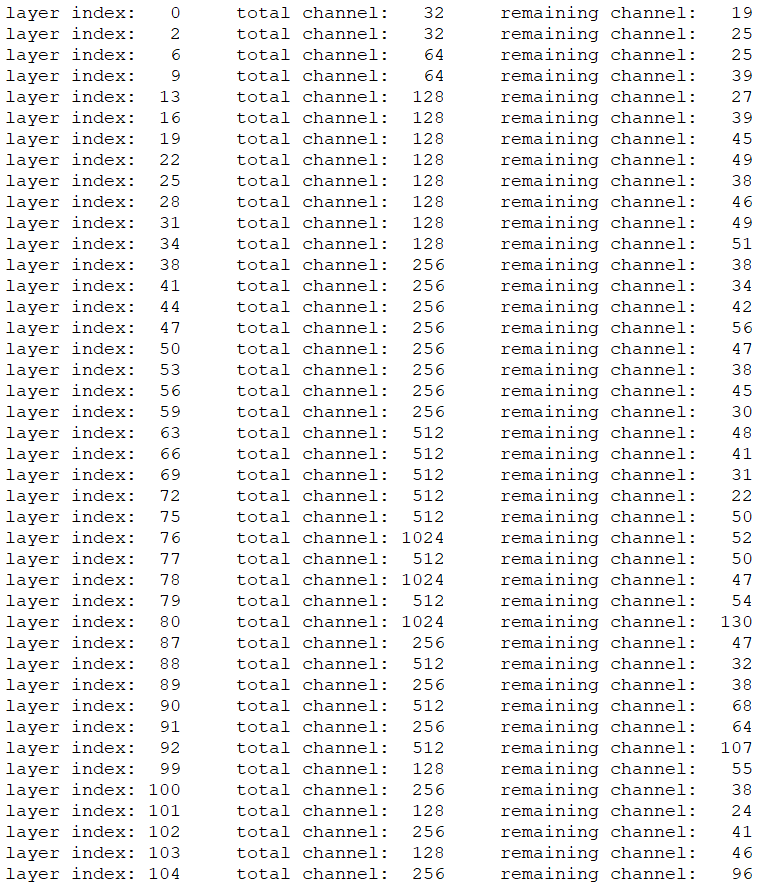 下图为对部分卷积层进行剪枝前后通道数的变化: