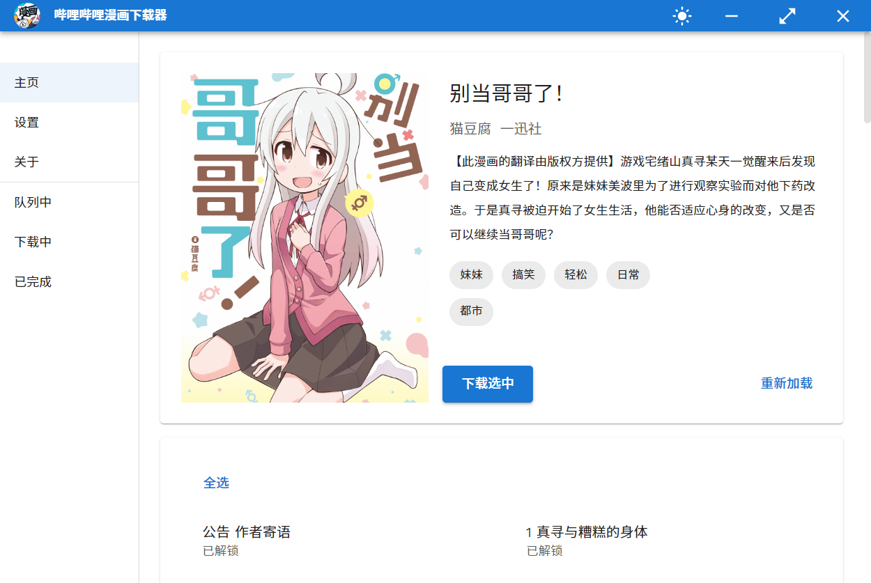 选中可以下载的漫画,点击开始下载即可添加到下载列表中