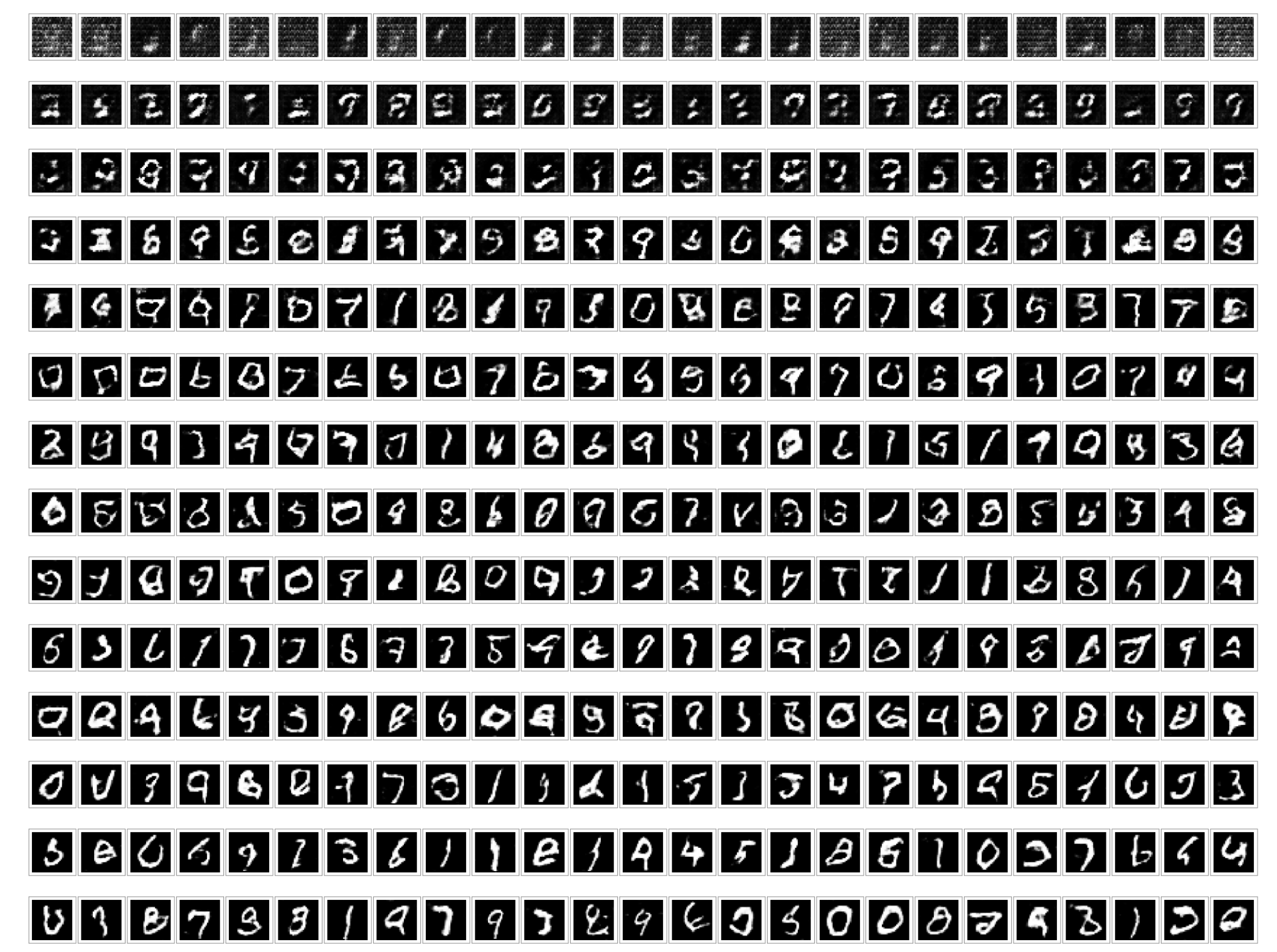 基于MNIST手写数据集,训练了一个隐层为Leaky ReLU的生成对抗网络,让模型学会自己生成手写数字。