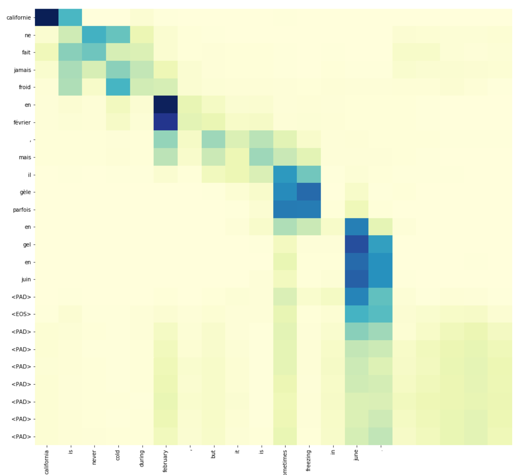 该代码基于Keras框架,在基础Seq2Seq模型基础上增加Attention机制与BiRNN,进一步提升翻译模型的效果;同时可视化Attention层,加深读者对Attention工作机制的理解。模型在在训练样本上的BLEU分数接近0.9。