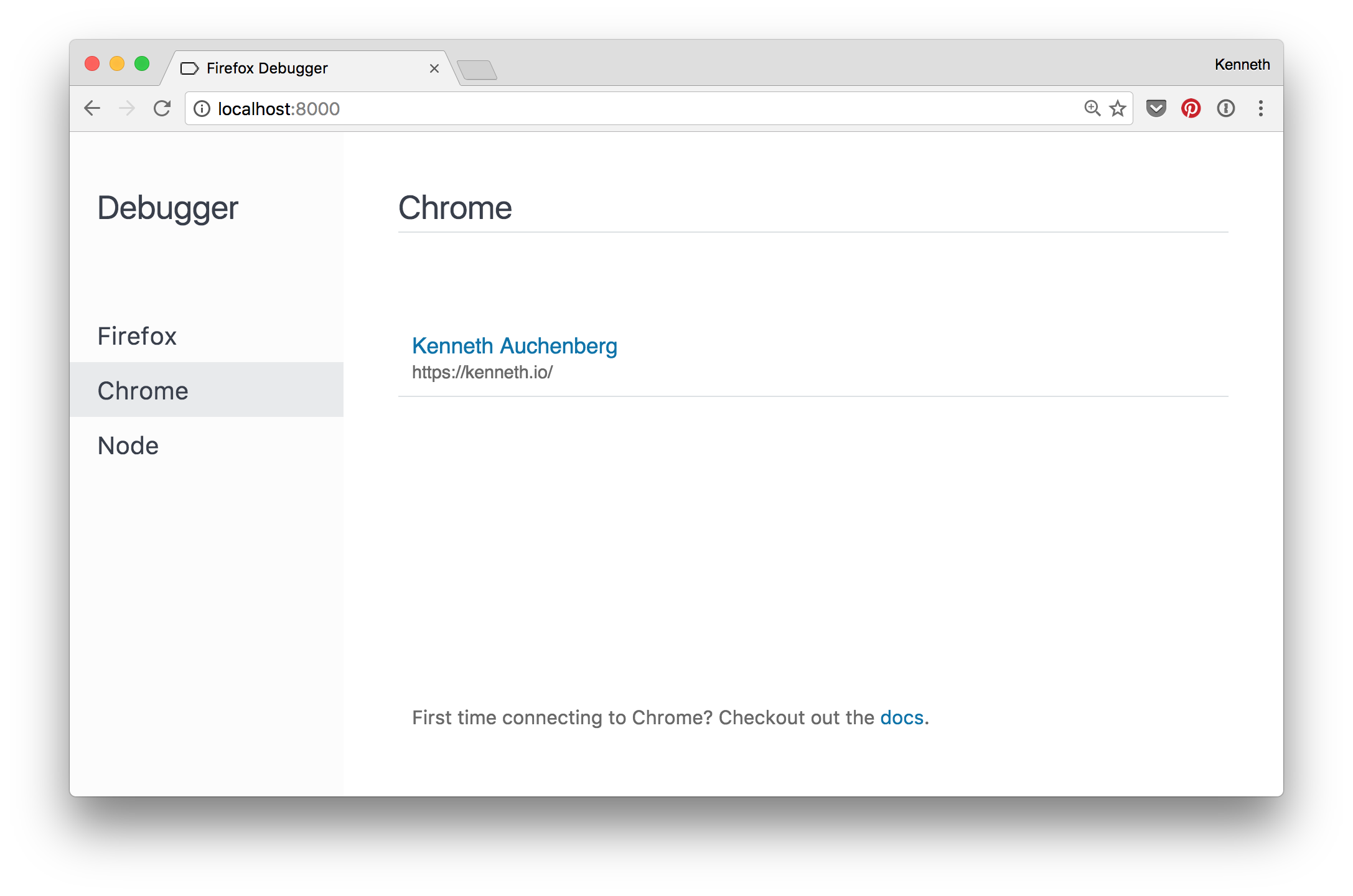 Open your favorite tool such as Chrome DevTools or Visual Studio Code and configure the tool to connect to the protocol adapter.