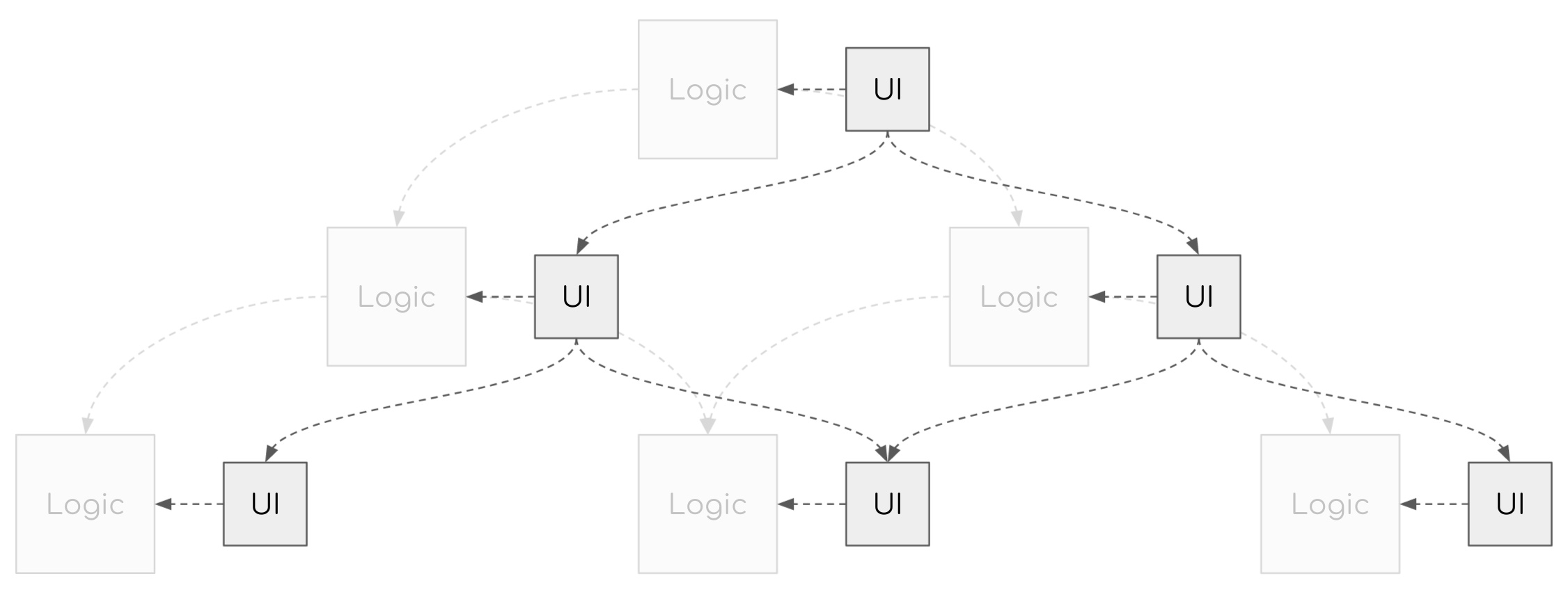 - Component - every component represents a piece of logic with its own lifecycle, the UI is optional and is plugged externally