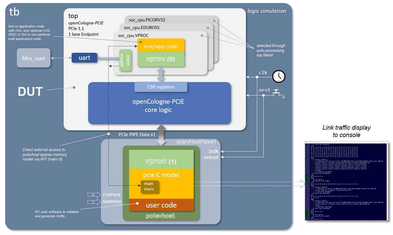 More details of the test bench, the pcievhost component and its usage can be found in the 5.sim/README.md file.