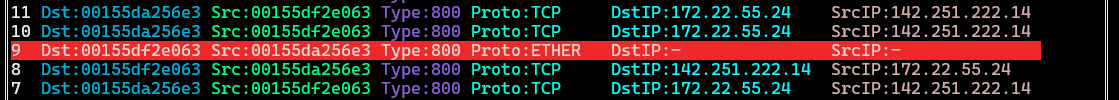 If packet parsing fails, it is indicated by “Proto:ETHER” as shown in the following image.