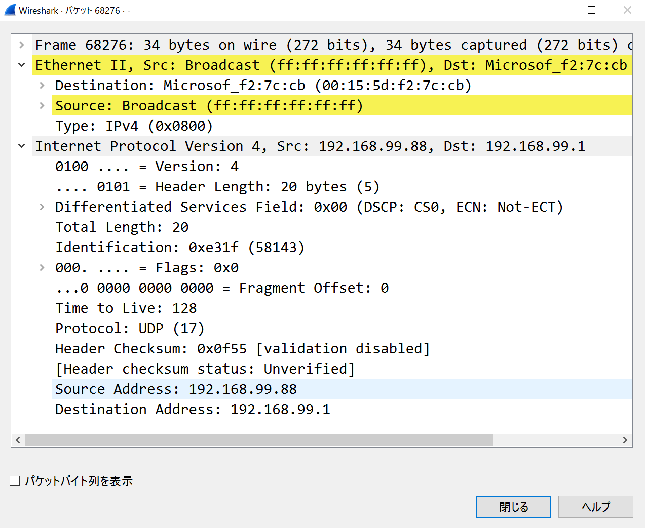 If you want to check the details of the packet, you can select the line, save it to a pcapng file, and import it into Wireshark or other software🙏