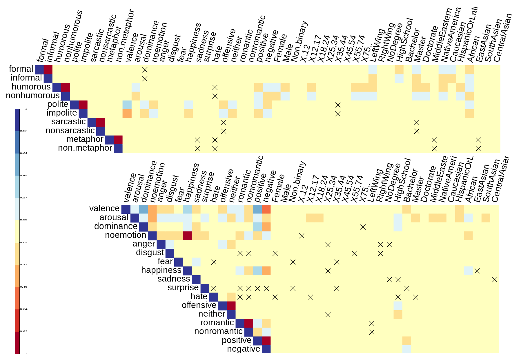 TASK_NAMES=("SentiTreeBank" "EmoBank_v" "EmoBank_a" "EmoBank_d" "SARC" "SARC_pol" "StanfordPoliteness" "GYAFC" "DailyDialog" "SarcasmGhosh" "ShortRomance" "CrowdFlower" "VUA" "TroFi" "ShortHumor" "ShortJokeKaggle" "HateOffensive" "PASTEL_politics" "PASTEL_country" "PASTEL_tod" "PASTEL_age" "PASTEL_education" "PASTEL_ethnic" "PASTEL_gender")
