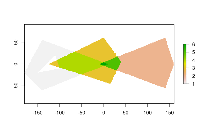 mammals = mammal_raster <- fasterize(mammal_shapes, mammal_raster, fun="sum"),