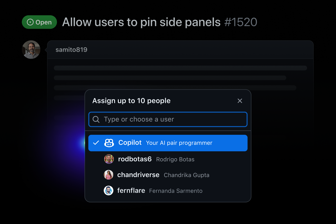 Assign issues directly to Copilot and let it autonomously write code, create pull requests, and respond to feedback in the background.