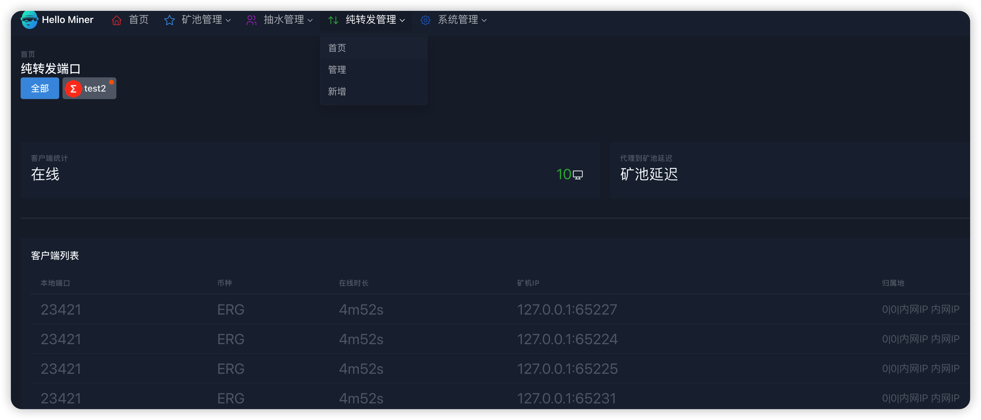 - 新增纯转发端口模式,支持一切币种,支持加密客户端,零损耗,无抽水,零开发费。