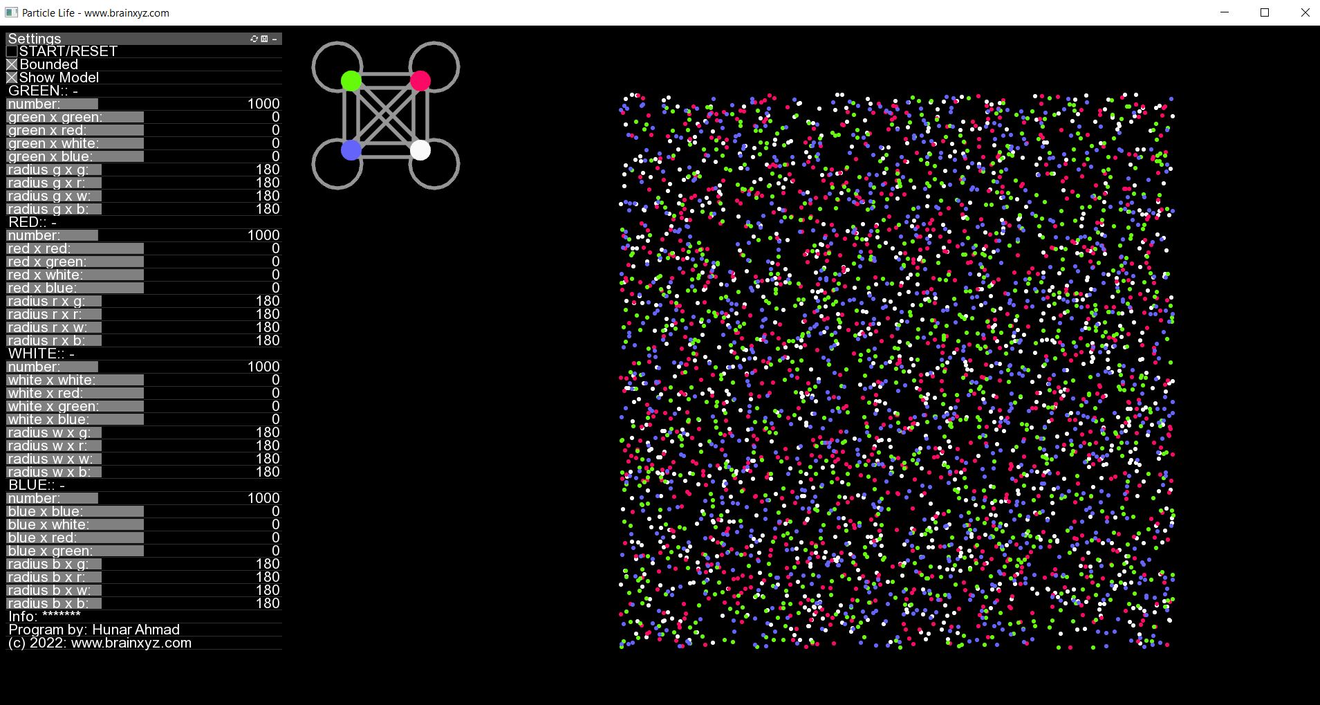 </script>Particle Life Simulation, Primordial Soup - Evolution, Conway's game of life, Cellular automata, Self organzing patterns,