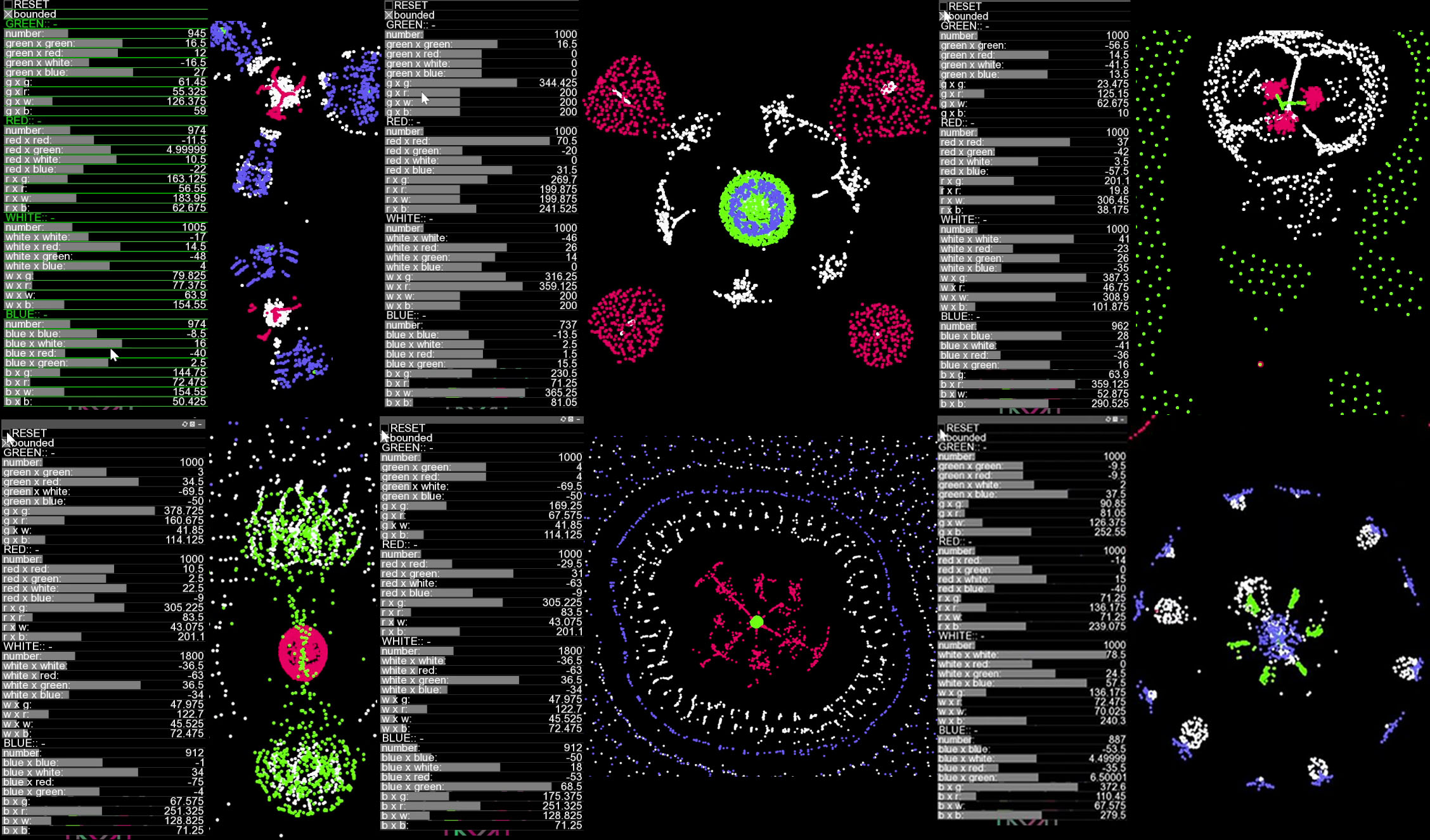 - 3d - https://hunar4321.github.io/particle-life/particle_life_3d.html