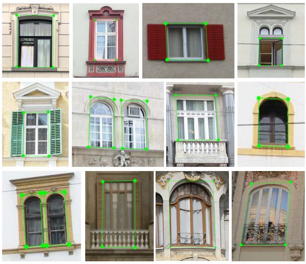 Facade images were collected from the Internet and existing datasets including TSG-20, TSG-60, ZuBuD, CMP, ECP, and then data cleaning proceeded to ensure data quality standards. Using the open source software LabelMe, we manually annotated the positions of four corners of windows in order.