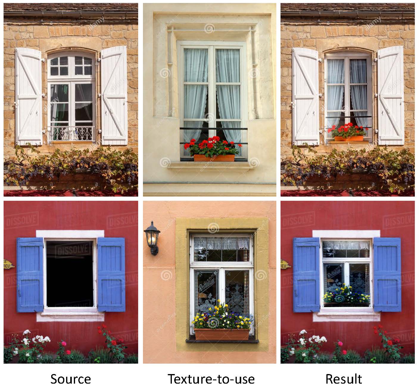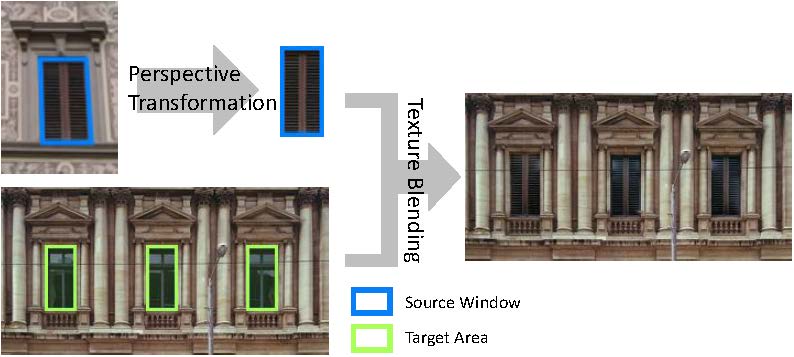 We have developed a computational workflow for window texture blending based on our window detection method. Based on our technique, graphics designer can easily manipulate facade photos to create ideal building textures, while removing windows which are unsatisfactory due to their open or closed status, lighting conditions and occlusion, replacing them with the selected unified window texture.