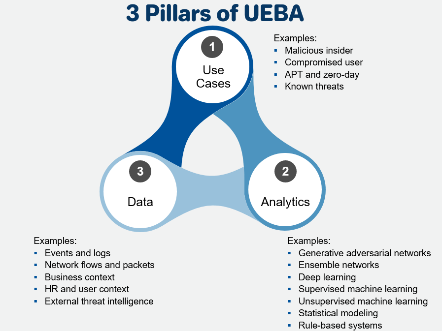User and Entity Behavior Analytics (UEBA) is a category of security solutions that use innovative analytics technology, including machine learning and deep learning, to discover abnormal and risky behavior by users, machines and other entities on the corporate network with a Security Incident and Event Management (SIEM) solution.