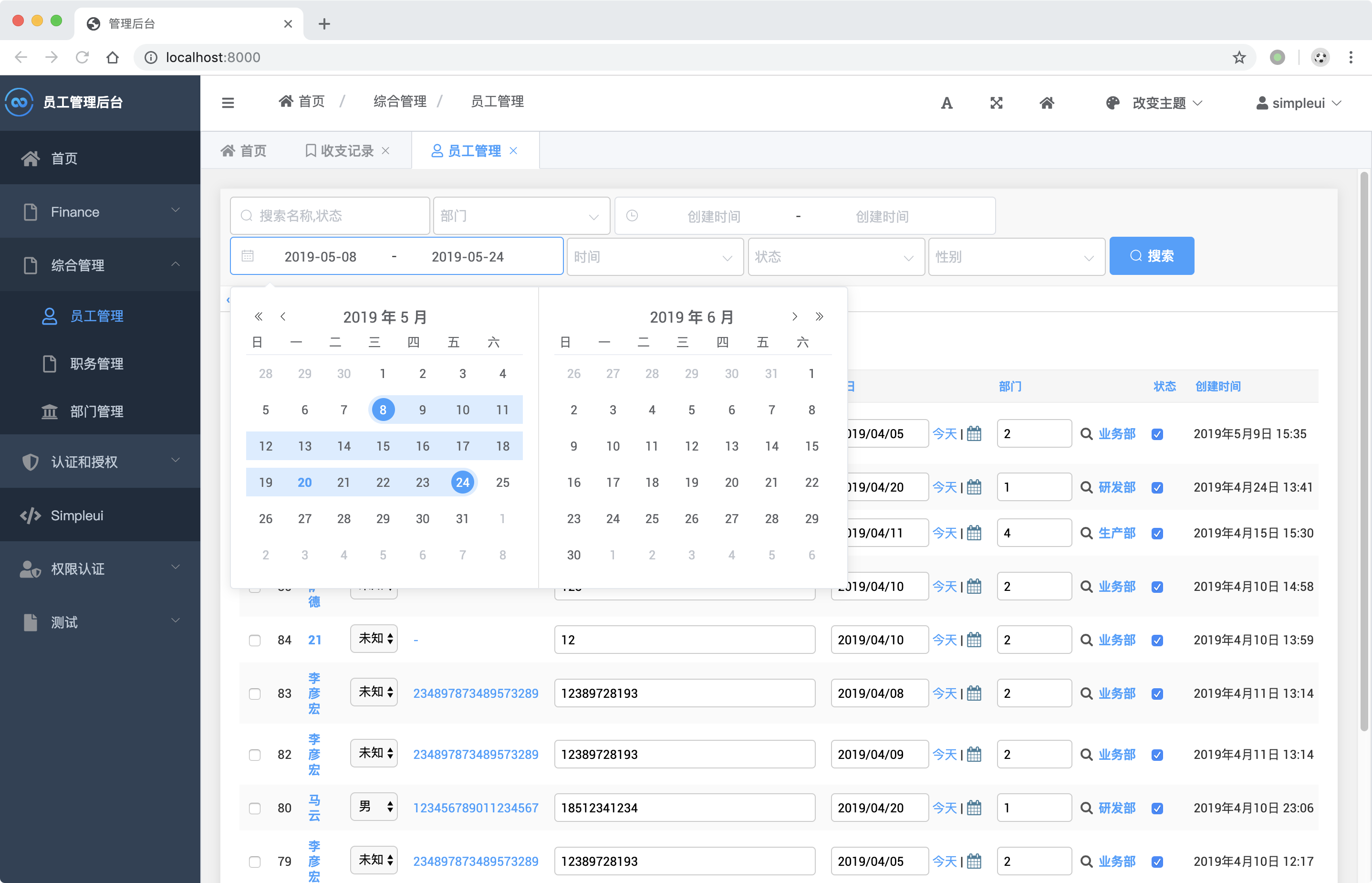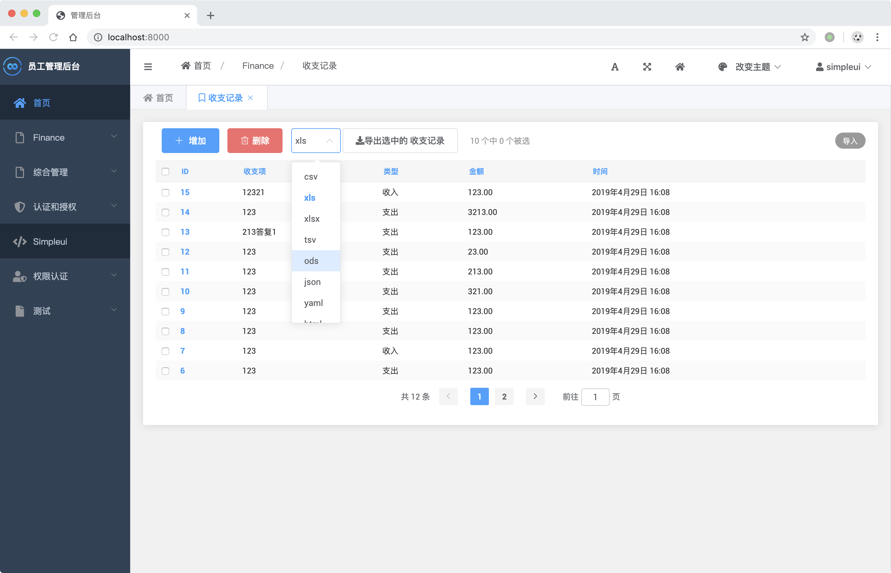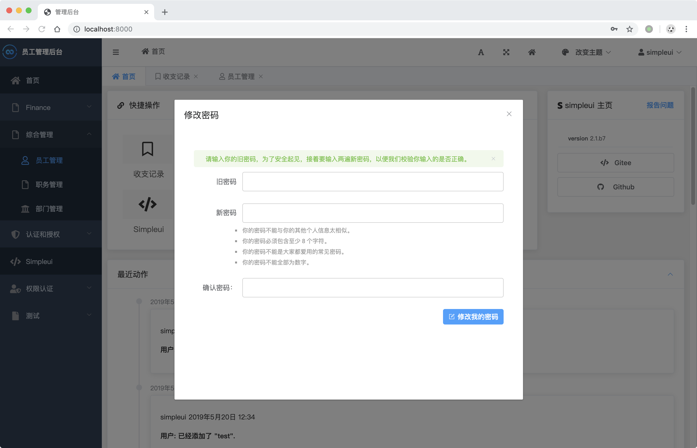docker run -p 8080:8080 newpanjing/simpleui_demo启动成功后访问:http://127.0.0.1:8080