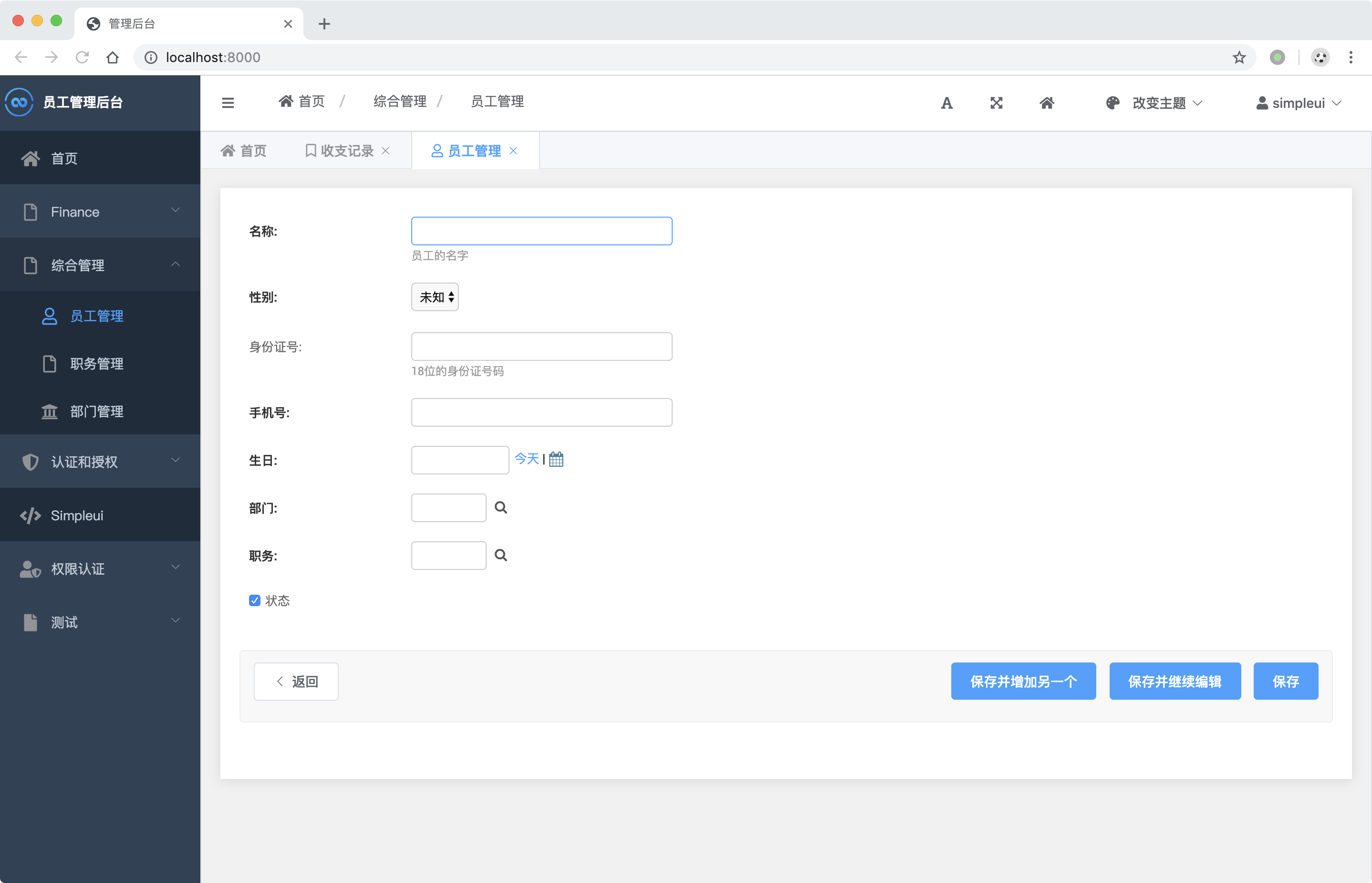 🎯 配置简单,极速上手,在settings.py中加入simpleui后启动立即生效,效率提升 100%!让后端开发得心应手。