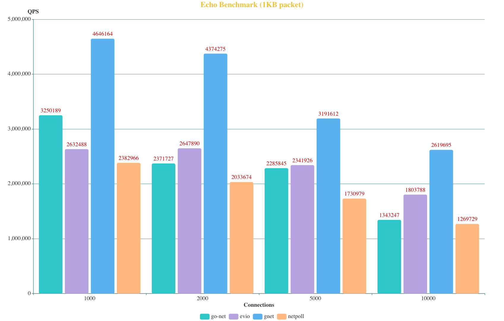 gnet is an event-driven networking framework that is ultra-fast and lightweight. It is built from scratch by exploiting epoll and kqueue and it can achieve much higher performance with lower memory consumption than Go net in many specific scenarios.