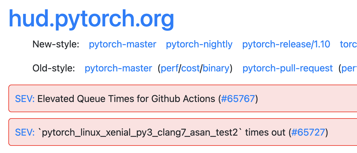- Gathering the recent SEV issues: https://github.com/pytorch/pytorch/issues?q=is%3Aissue+label%3A%22ci%3A+sev%22+