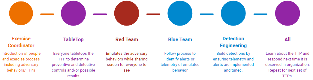At a high level, a live, hands-on keyboard, Purple Team Exercise goes like this: