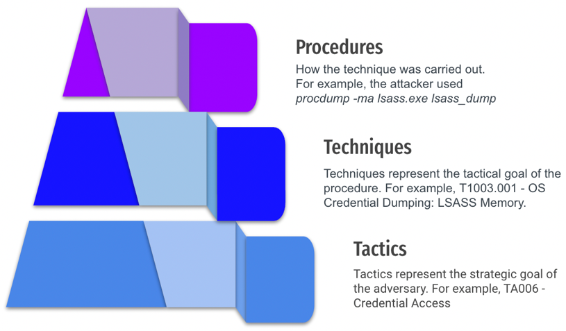 The next step in an operationalized purple team is to analyze and organize the new adversary behavior, tactic, techniques, and procedures. First, extract TTPs at the Procedure Level and map them to MITRE ATT&CK if possible. MITRE ATT&CK allows for a common language between teams and makes the discussions and collaboration easier. Note that MITRE ATT&CK may not have exact mappings for new behaviors as they must be seen in the wild before they are added to the ATT&CK matrix.