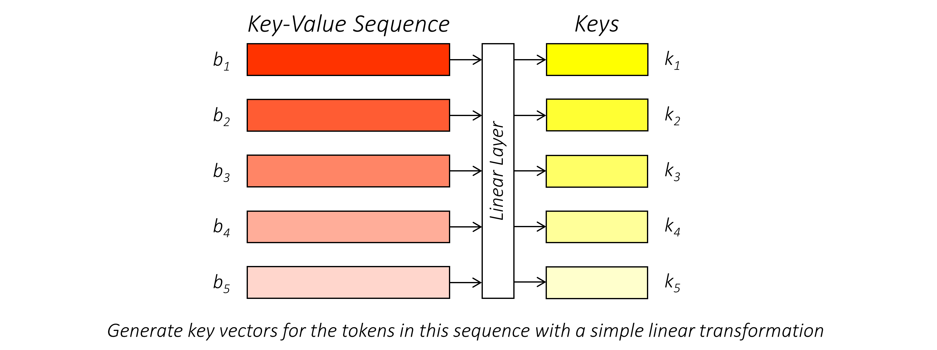 Similarly, tokens in the key-value sequence represent keys and values, but are not yet the keys and values. We project these token-representations into keys and values with linear layers.