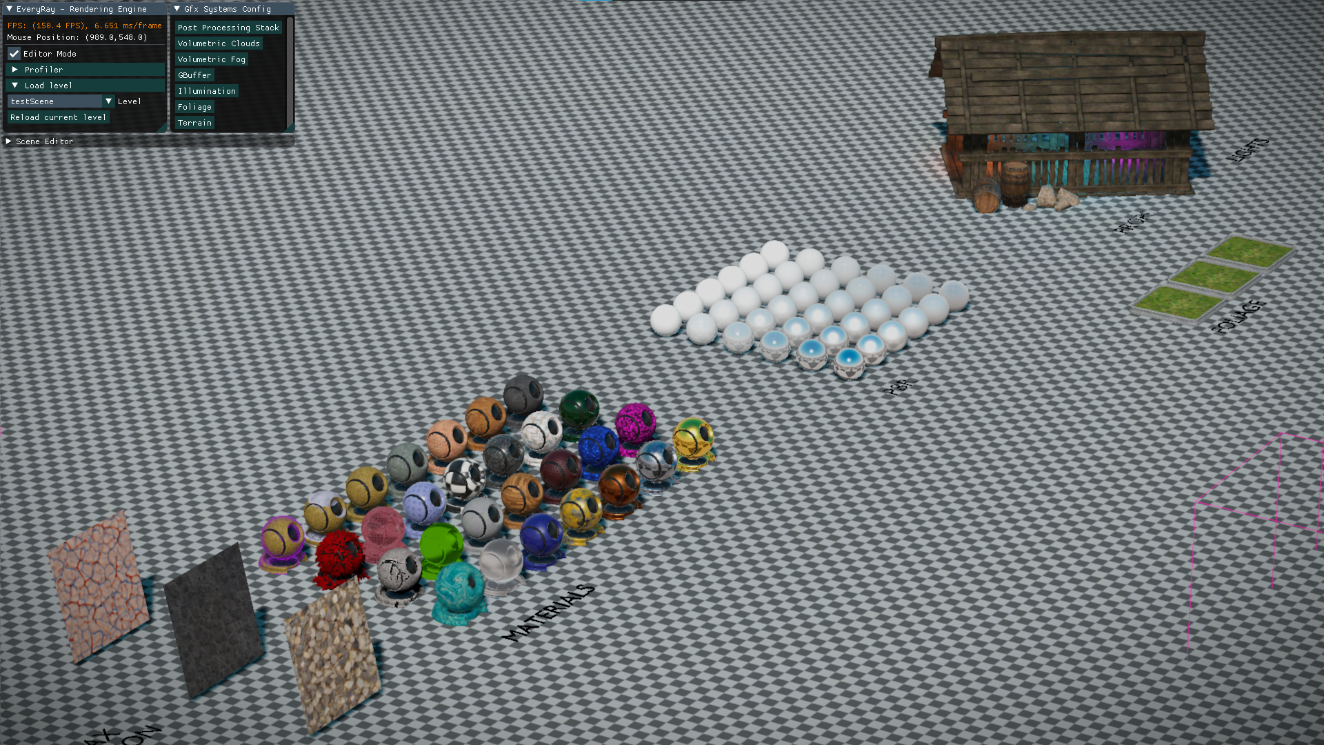 "EveryRay" is a rendering engine that is written in C++ with a focus on quick prototyping of graphical techniques and features. It is lightweight, easy to use and already contains many existing rendering solutions inside.