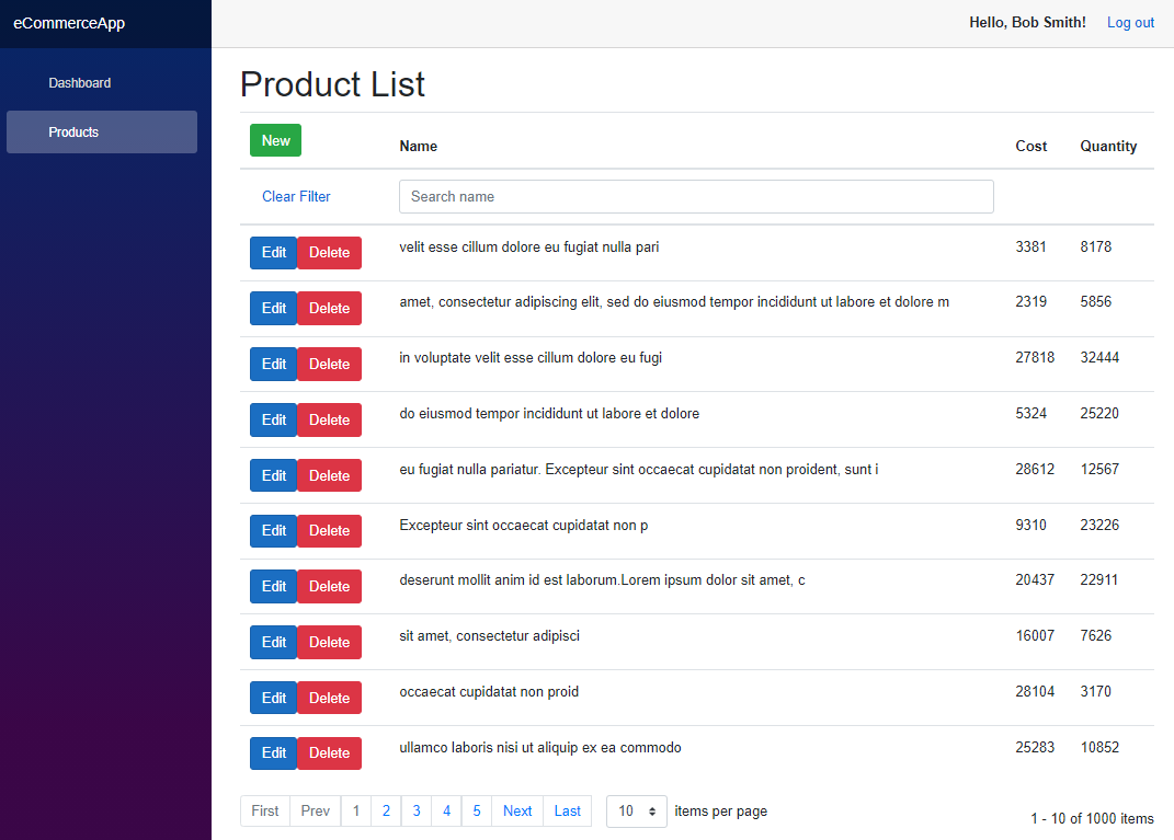 }// output model with items, total items, page and page size with serving for binding with the table UI control