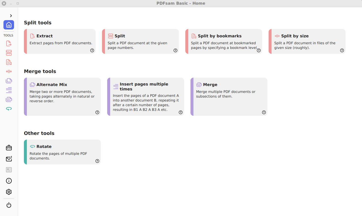 Official SCM repository for PDFsam Basic, a free and open source, multi-platform software designed to extract pages, split, merge, mix and rotate PDF files.