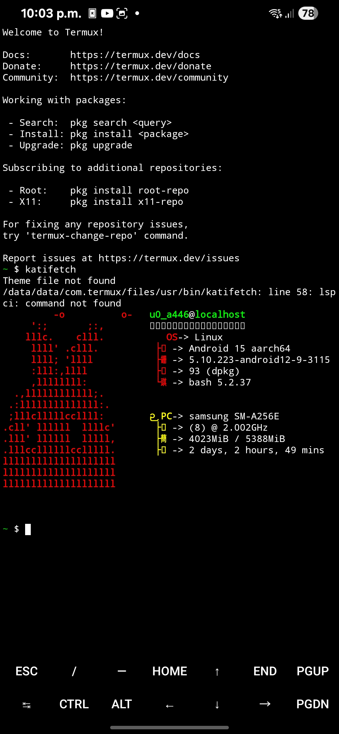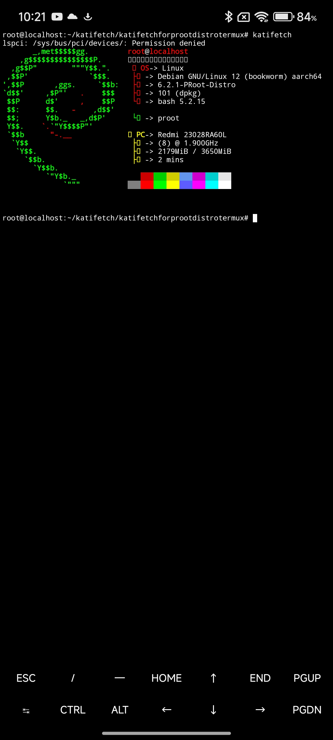 Run Katifetch inside a Linux container using proot-distro on Termux!