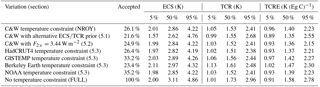 Millar, R. J., Otto, A., Forster, P. M., Lowe, J. A., Ingram, W. J., and Allen, M. R.: Model structure in observational constraints on transient climate response, Clim. Change, 131, 199–211, https://doi.org/10.1007/s10584-015-1384-4, 2015. a, b, c, d, e