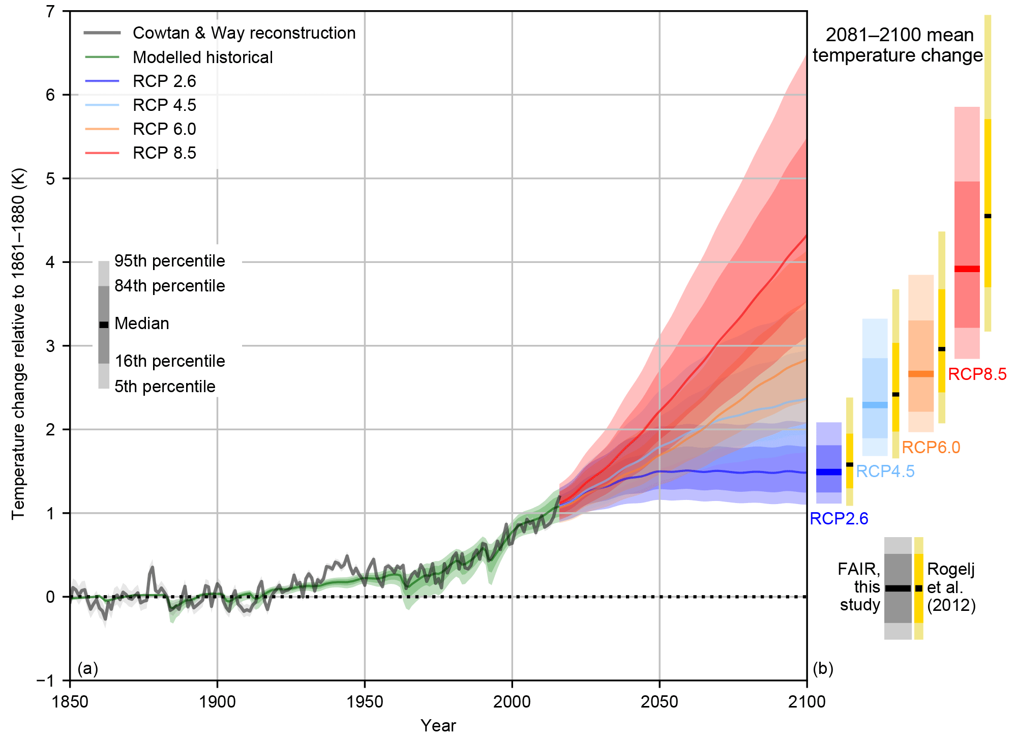 Richardson, M., Cowtan, K., Hawkins, E., and Stolpe, M. B.: Reconciled climate response estimates from climate models and the energy budget of Earth, Nat. Clim. Change, 6, 931–935, 2016. a