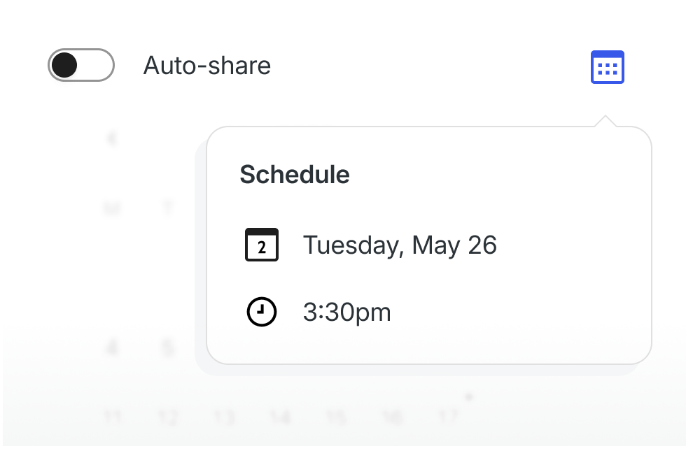 Share automatically when you publish, or schedule posts for later. Before anything goes out, you’ll see a pre-publish confirmation to review and proofread.